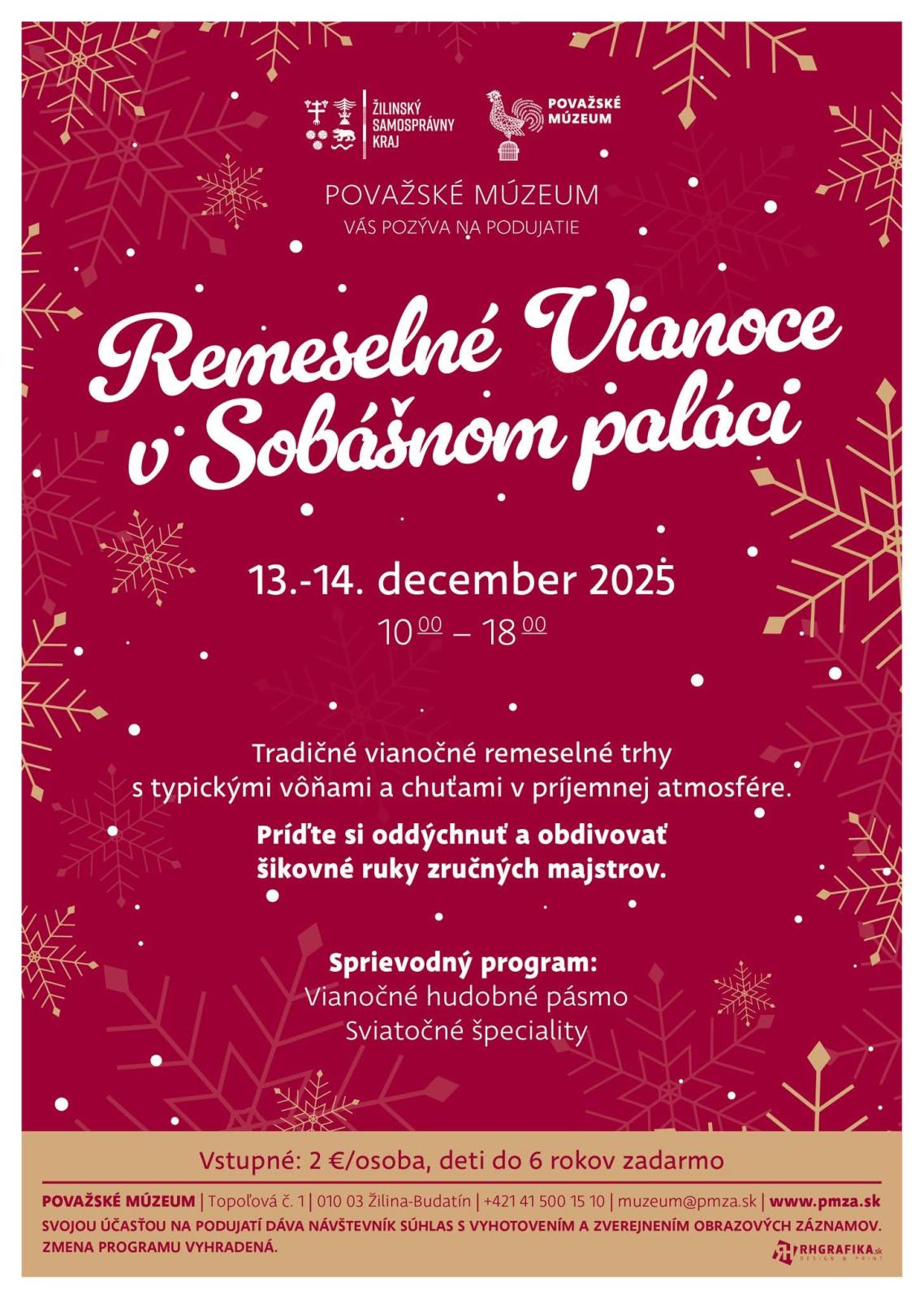 Strávte príjemný predvianočný čas v krásnych priestoroch Sobášneho paláca v Bytči. Počas víkendu 13. a 14. decembra v čase od 10.00 do 18.00 sa uskutoční druhý ročník podujatia Remeselné Vianoce.