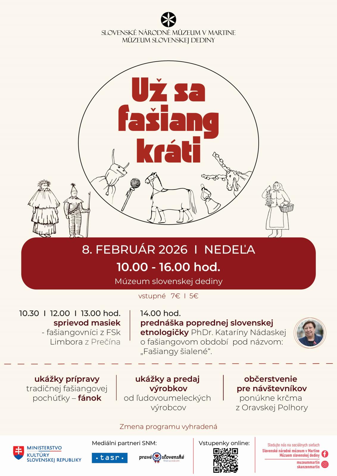 Príďte si vychutnať tú pravú fašiangovú atmosféru do Múzea slovenskej dediny na prvé tohtoročné podujatie Už sa fašiang kráti, ktoré sa uskutoční v nedeľu 8. februára 2026 od 10.00 do 16.00 hod.