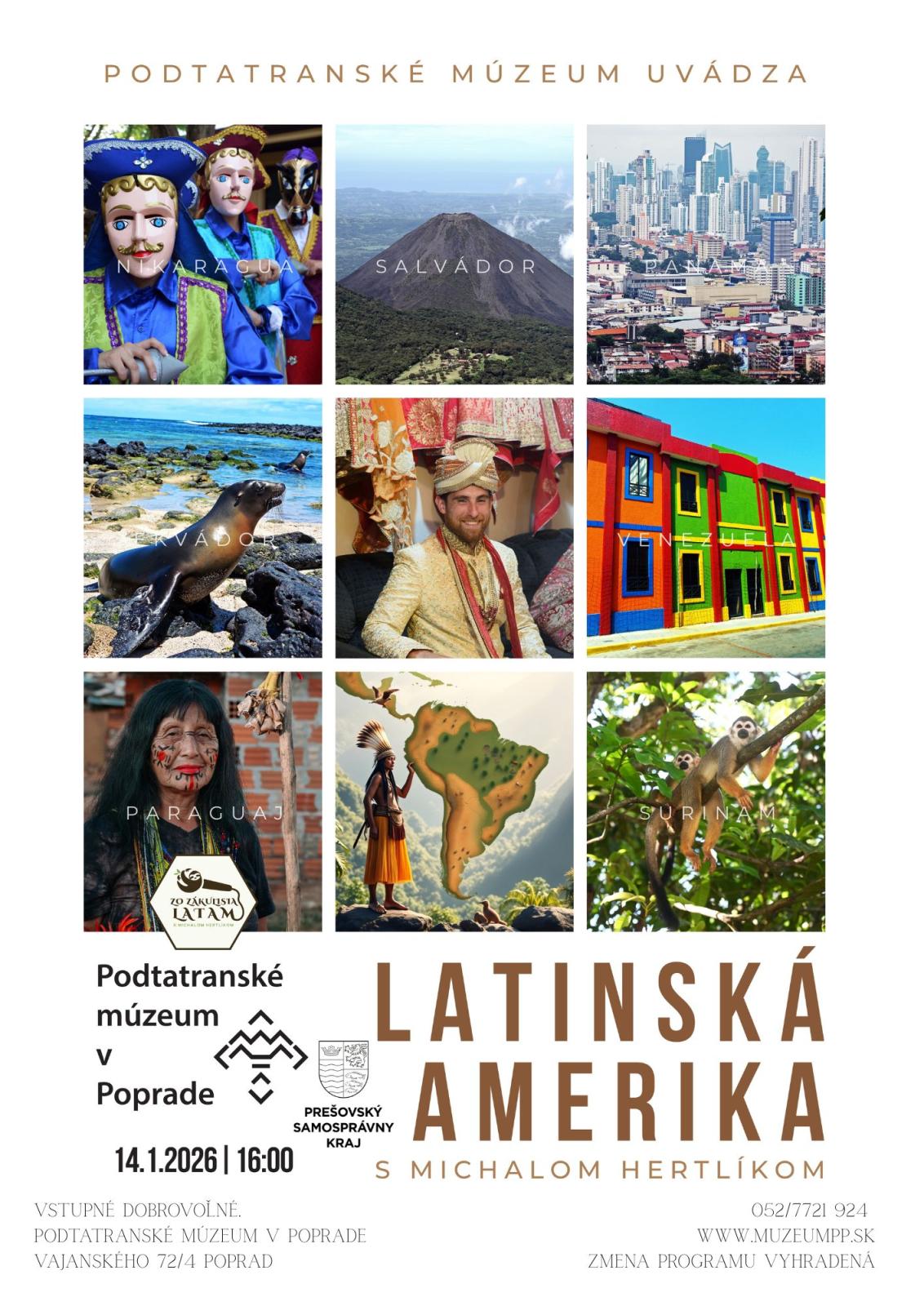 Podtatranské múzeum v Poprade, kultúrna inštitúcia v zriaďovateľskej pôsobnosti Prešovského samosprávneho kraja, Vás pozýva na cestovateľskú prednášku "LATINSKÁ AMERIKA S MICHALOM HERTLÍKOM".
