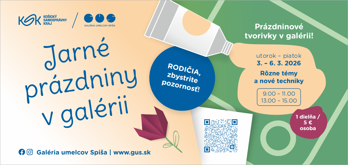 Galéria umelcov Spiša v Spišskej Novej Vsi, kultúrne zariadenie Košického samosprávneho kraja, pozýva počas jarných prázdnin v termíne 3. 3. – 6. 3. 2026,