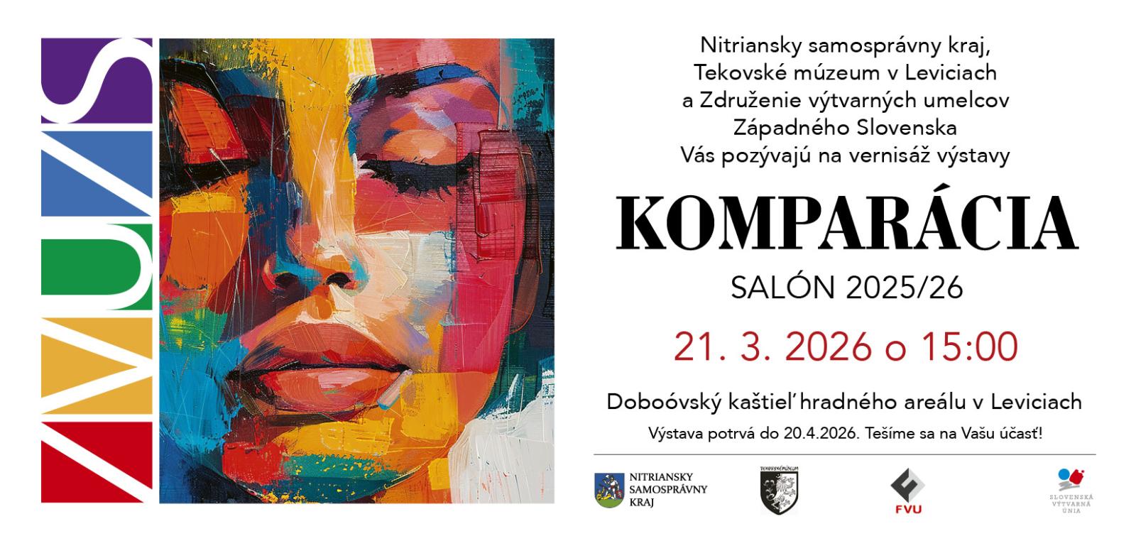 Tekovské múzeum v Leviciach a Združenie výtvarných umelcov Západného Slovenska si Vás dovoľujú srdečne pozvať na slávnostné otvorenie výstavy „Komparácia“ Salón 2025/2026, ktoré sa uskutoční 21. marca 2026 o 15.00 hod.