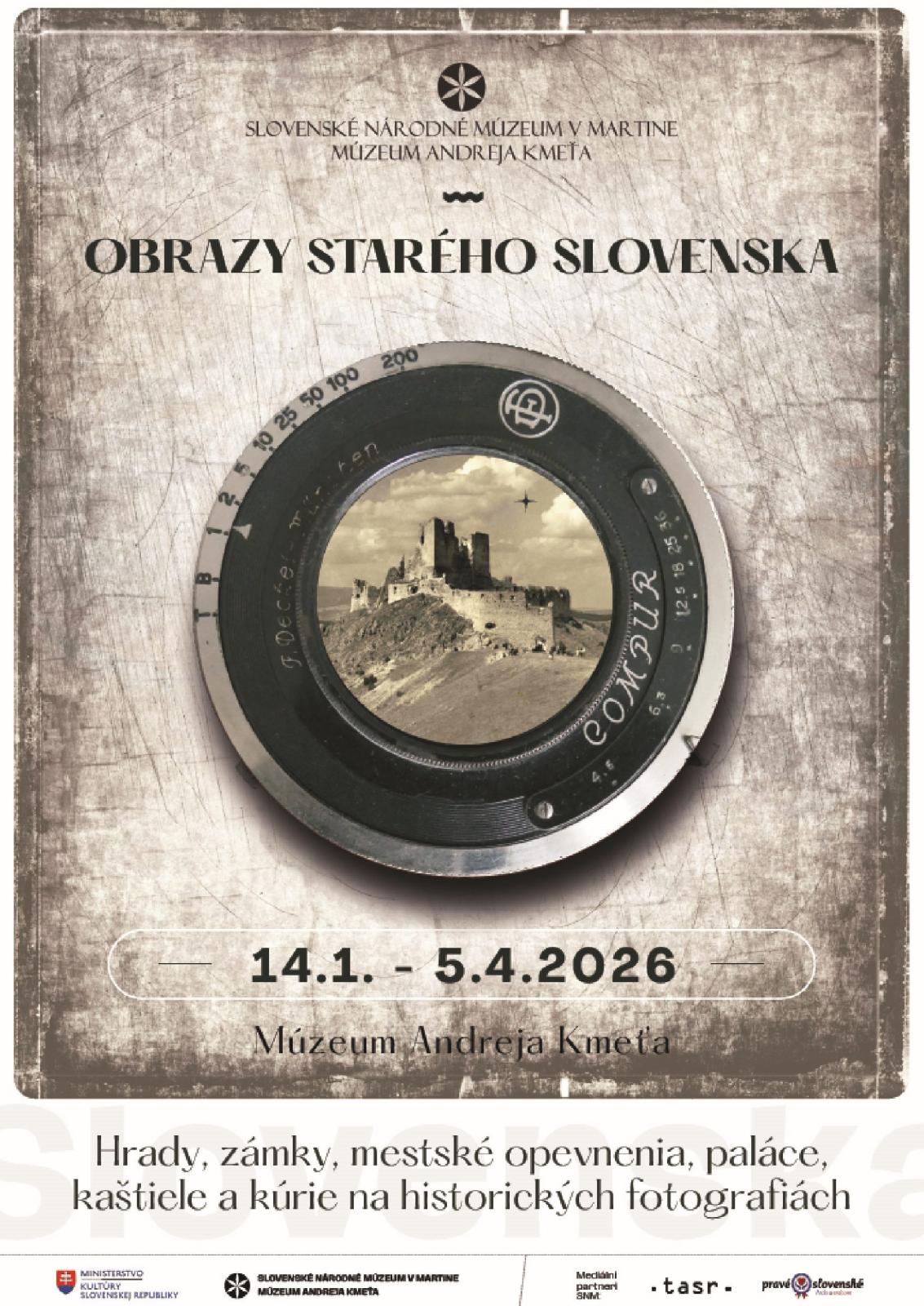 Fotografia je svedkom doby. Zachytáva rôzne momenty života človeka, krajinu alebo slúži na dokumentáciu rôznych predmetov či zhmotnenia umeleckých predstáv fotografa. Prvé fotografie vznikali v 30. – 40. rokoch 19. storočia a už v nasledujúcich desaťročiach sa rozvinuli do väčších rozmerov. Vývojom fotografie sa zdokonalila aj výroba pohľadníc. Pohľadnica ako produkt fotografie sa rozvinula v 70. – 80. rokoch 19. storočia a až do obdobia 1. svetovej vojny prežívala svoj zlatý vek. Významnú úlohu v záchrane a uchovávaní rôzneho typu fotografického materiálu zohráva Fotoarchív Slovenského národného múzea v Martine, z ktorého verejnosti ponúkame výstavu Obrazy starého Slovenska – hrady, zámky, mestské opevnenie, paláce, kaštiele a kúrie na historických fotografiách.