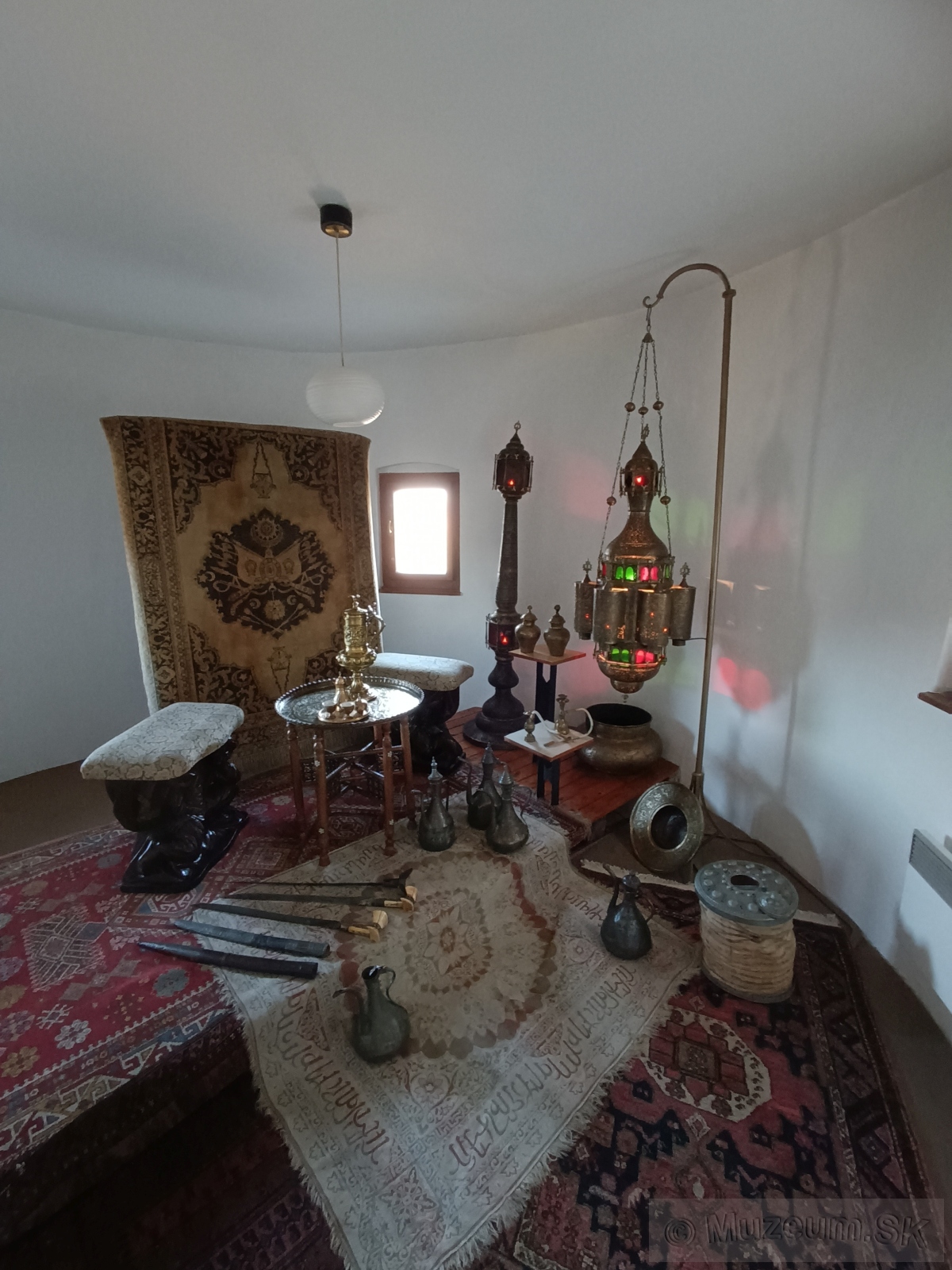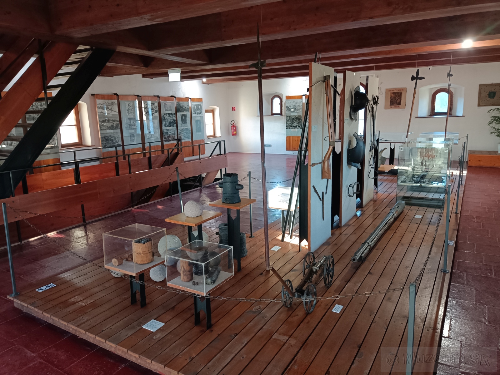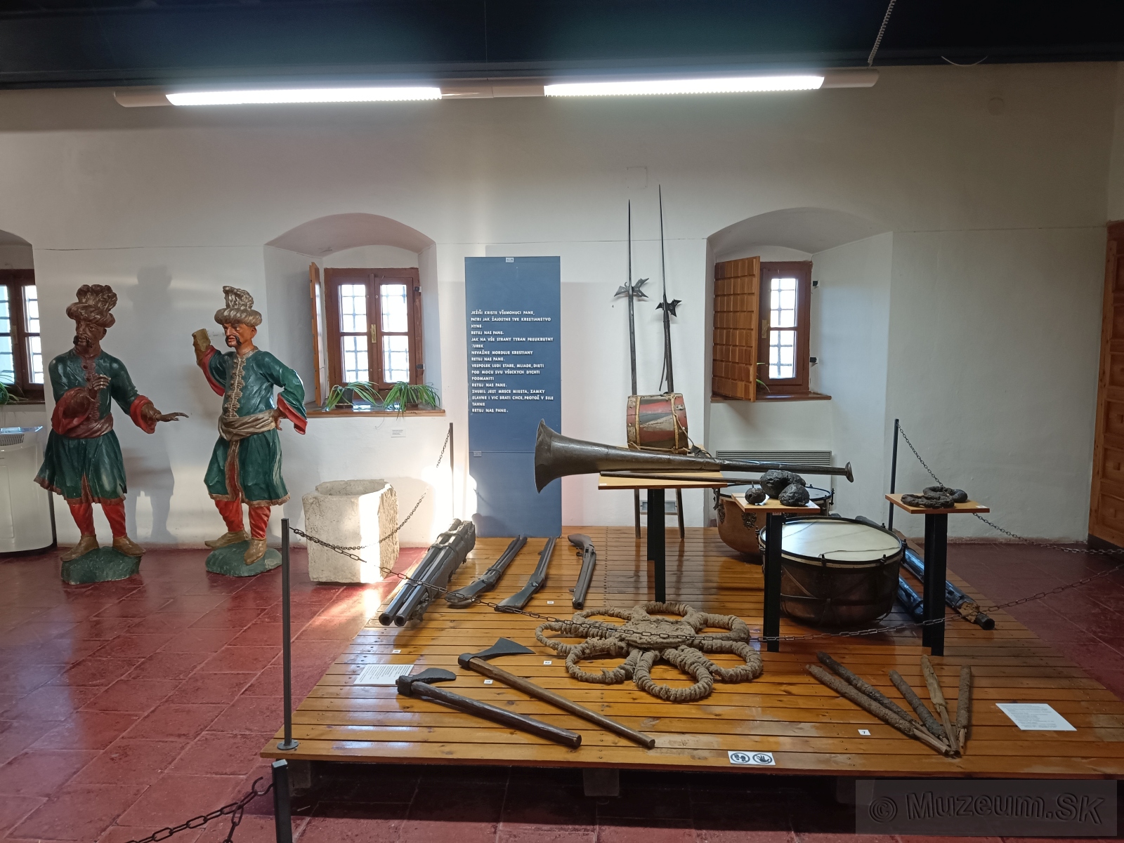 Sedemhlavňové delo tzv. organ zo 16. storočia, turecké jatagány, hradné pušky, zápalné smolné palice, plastiky Turkov v životnej veľkosti, orientálne interiéry, strážnica uhorského vojska, atď.